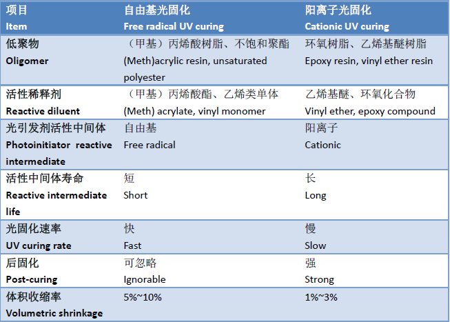 ● 陽離子光固化優(yōu)勢 / Cationic UV curing advantages