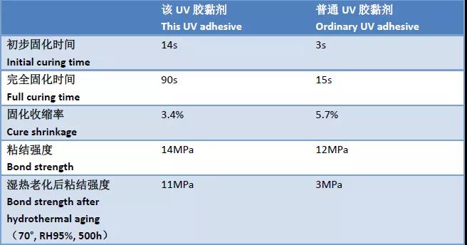 Cationic curing system has the disadvantages of slow curing speed, few types of oligomers and reactive diluents, high price of photoinitiators, and difficult adjustment of cured product performance. If the free radical and cationic hybrid UV curing system are properly combined, it is expected to learn from each other's strengths, and obtain a UV-curable adhesive with fast curing speed, small volume shrinkage, low internal stress of the adhesive layer and high bonding strength.